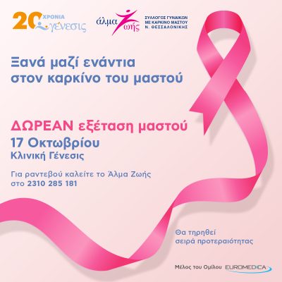 Κλινική ΓΕΝΕΣΙΣ και ΑΛΜΑ ΖΩΗΣ: Συνεργασία για την Πρόληψη του Καρκίνου του Μαστού