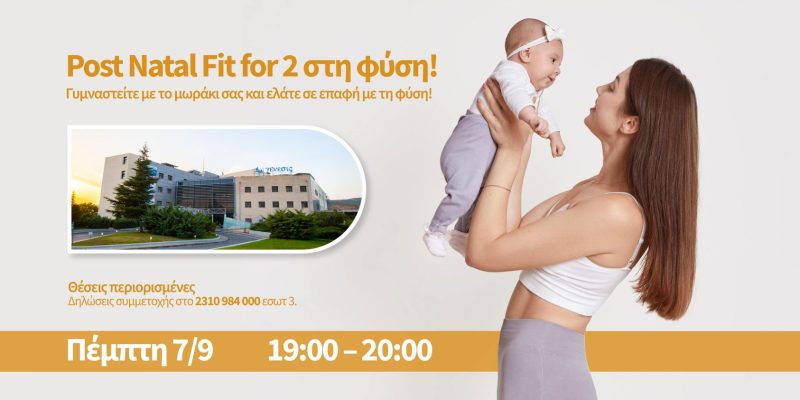 Γυμναστείτε μαζί με το μωράκι σας, στη φύση, στις εγκαταστάσεις της Κλινικής Γένεσις! Αν έχετε γεννήσει στο διάστημα μεταξύ 8 εβδομάδων