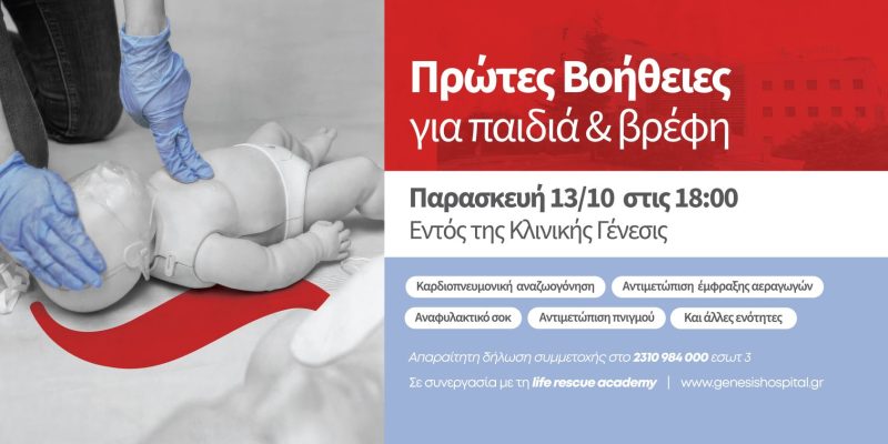 Την Τετάρτη 19 Ιουνίου 2024 από τις 18.00 έως τις 20.00, εκπαιδευόμαστε στις πρώτες βοήθειες για βρέφη & παιδιά και πιο
